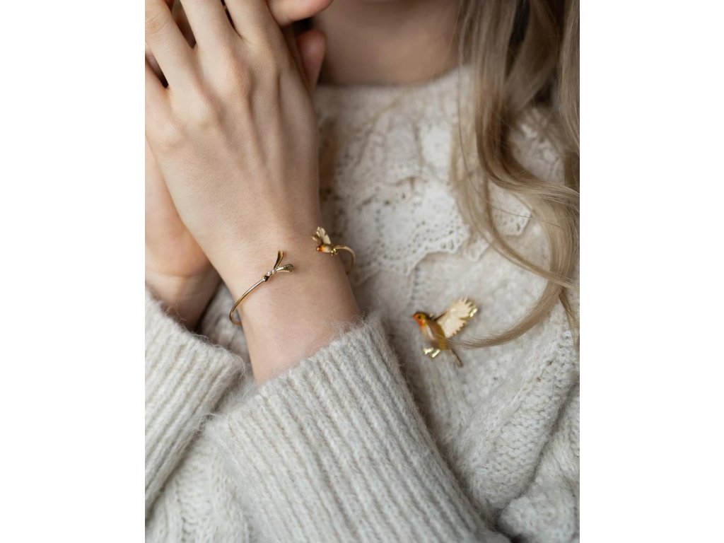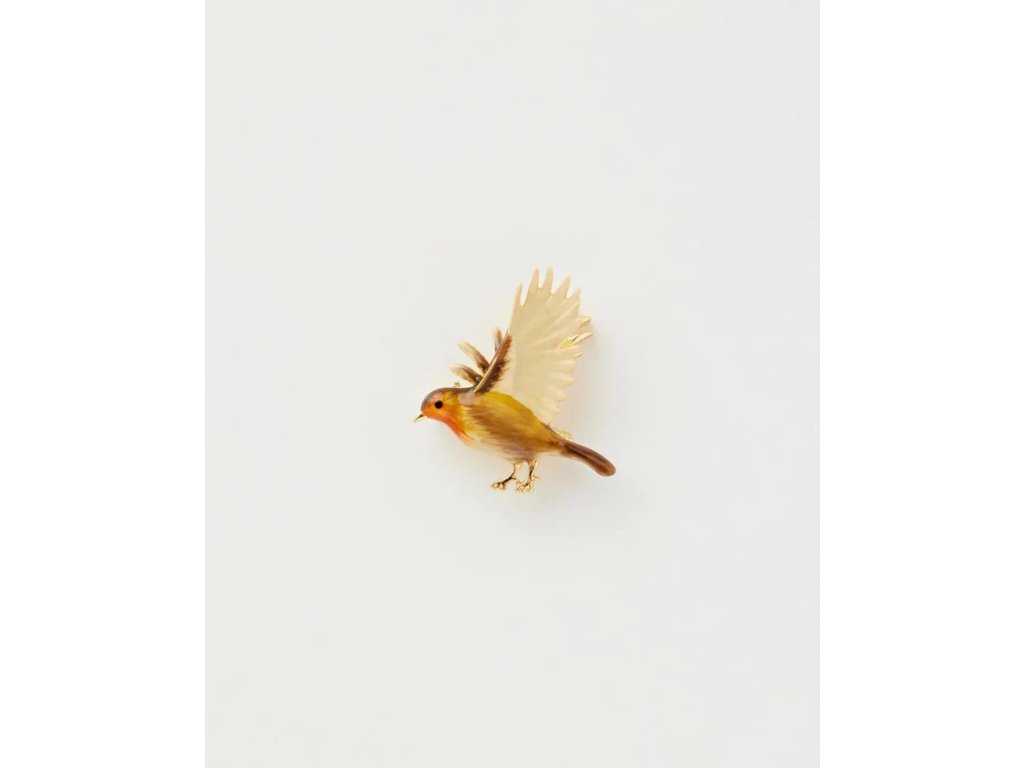 Robin symbolizuje štěstí, štěstí, znovuzrození a někdy dokonce jako posel pro milované a ztracené. Pečlivě vyrobená a ručně malovaná smaltem se naše brož Flying Robin stává osobním totemem, který značí potenciál pro pozitivní změnu a nově nalezenou radost. Bezpečnostní spona znamená, že tento kus lze bezpečně připevnit k jakémukoli předmětu, takže se nemusíte obávat ztráty nově nalezeného pokladu. Nechte se radostným voláním červenek a strak doprovázet na vaší cestě vaší vlastní pohádkou noci.
