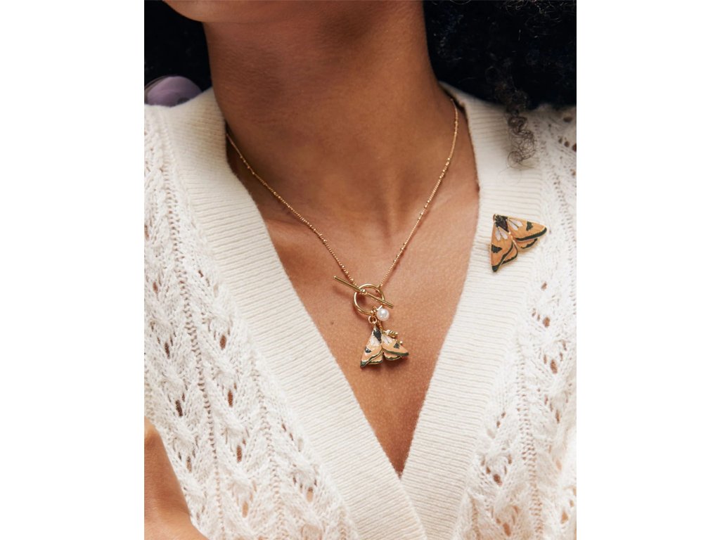 Nechte se naší smaltovanou broží s můry vést za svitu měsíce při vašem dalším dobrodružství. Bezpečnostní spona zajišťuje, že tento kus lze bezpečně připevnit k libovolnému předmětu, takže se nemusíte bát, že o svůj nově nalezený poklad přijdete.