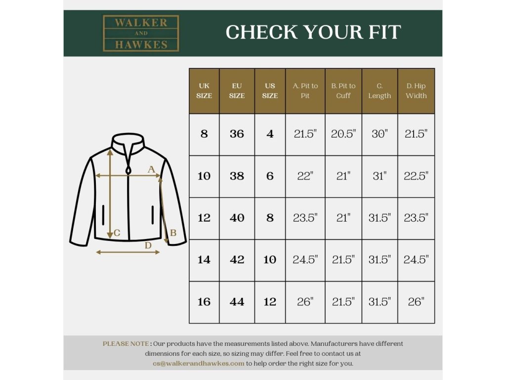 Před nákupem se přesně změřte a nahlédněte do našeho průvodce velikostí na obrázcích produktů, abyste získali skvělý střih, který od produktu Walker and Hawkes očekáváte.