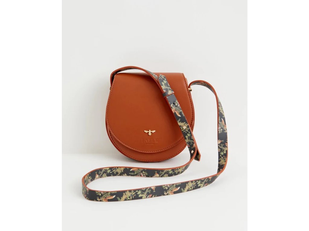 Naše klasická podsedlová brašna prošla sezónní aktualizací. Zakřivený design navozuje pocit venkovského života, připomínající klasickou jezdeckou podsedlovou brašnu, ale s kouzelnou povrchovou úpravou s aplikací našeho potisku A Night's Tale na popruhu. Tento kompaktní crossbody v půlnoční hnědé certifikované veganské kůži je dokonalým nosičem, který vás bude doprovázet na vaší cestě vaší vlastní pohádkou Night's Tale.