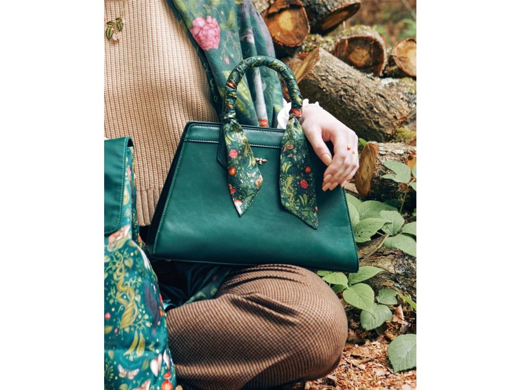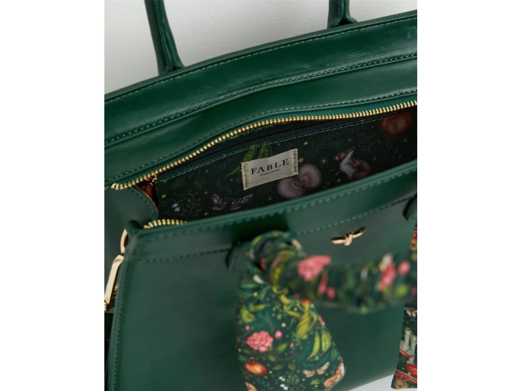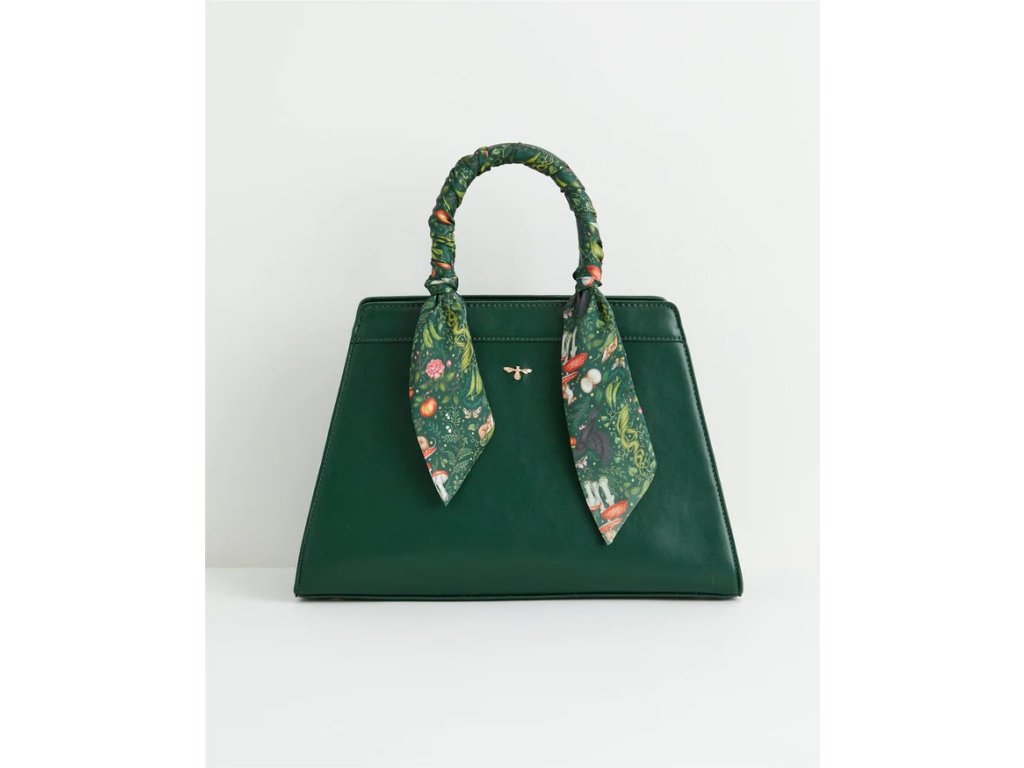 Naše hostující umělkyně, Catherine Rowe, posypala tento kousek svým kouzlem svým pohádkovým potiskem Into The Woods, navrženým speciálně pro nás. Strukturovaná kabelka je lemována krásným potiskem Catherine a je také zobrazena na hedvábném keprovém šátku omotaném kolem rukojeti. Přepínejte mezi madly a popruhem přes tělo a změňte svůj vzhled. Tato taška vyrobená z certifikované veganské kůže v lesní zelené barvě má dostatek prostoru a kapsy na zip, díky čemuž je vaší novou výhodou pro procházení knihkupectví, rande a víkendové večeře s přáteli.