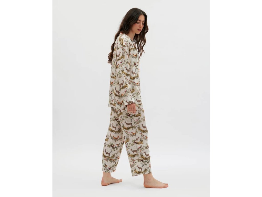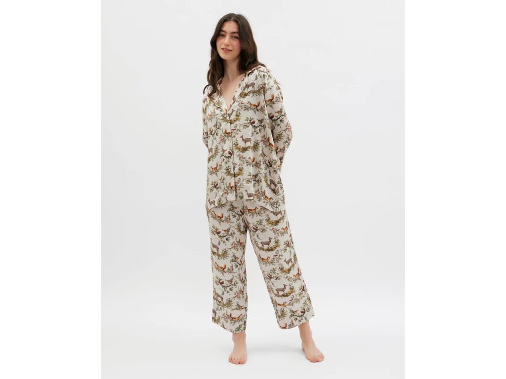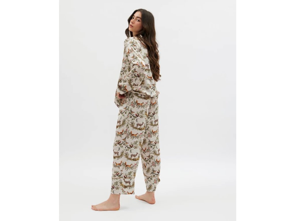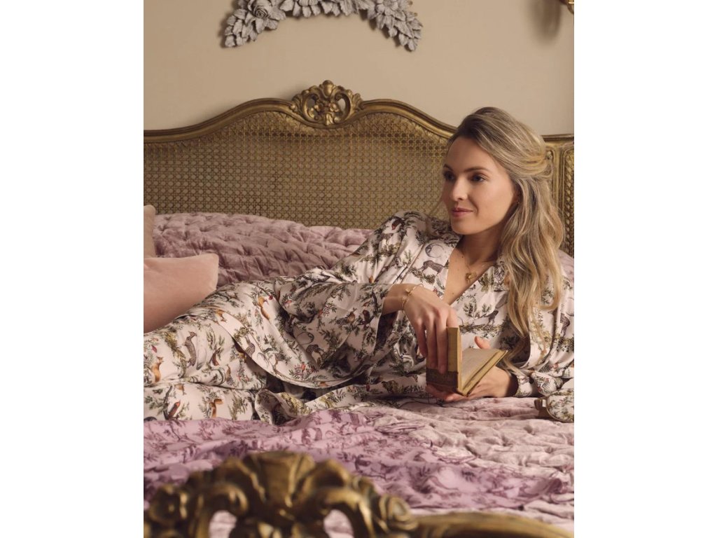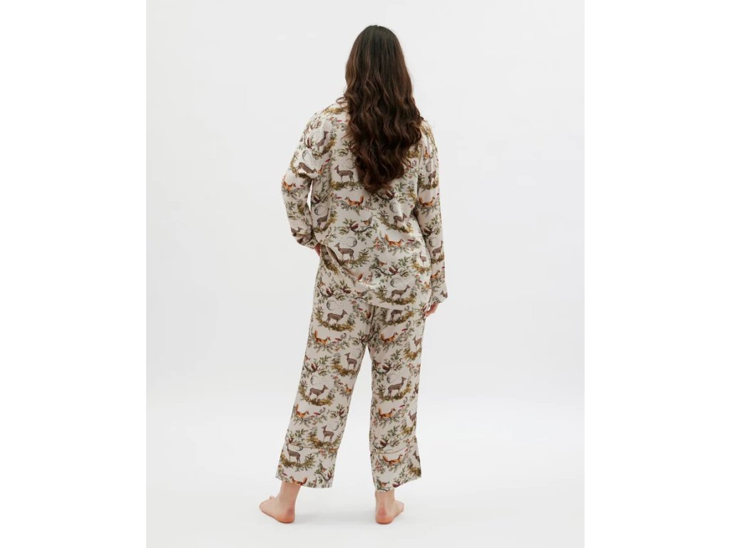 Naše klasicky ušitá dlouhá pyžama zajišťují maximální pohodlí a eleganci v našem nádherném potisku Woodland Toile de Jouy. Vyrobeno z nádherně měkkého prémiového viskózového saténu, zdobené zlatým lemováním pro luxusní povrch. Navrženo s našimi obvyklými úvahami o příbězích z britského venkova, s rozmarným příklonem ke klasické literatuře. Náš vyprávění z lesa je inspirováno Chaucerovým příběhem rytíře.