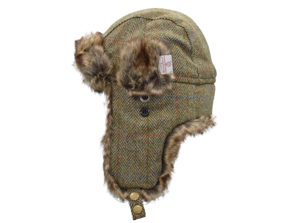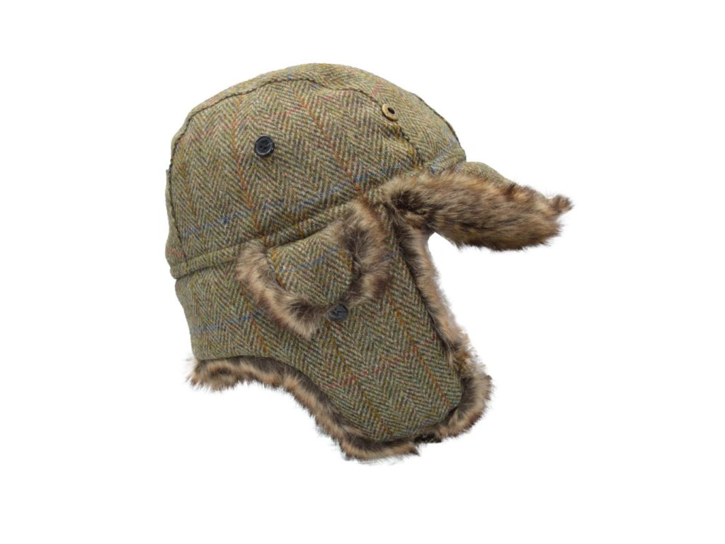 Ušanka Harris Tweed Charles Trapper Moss Green